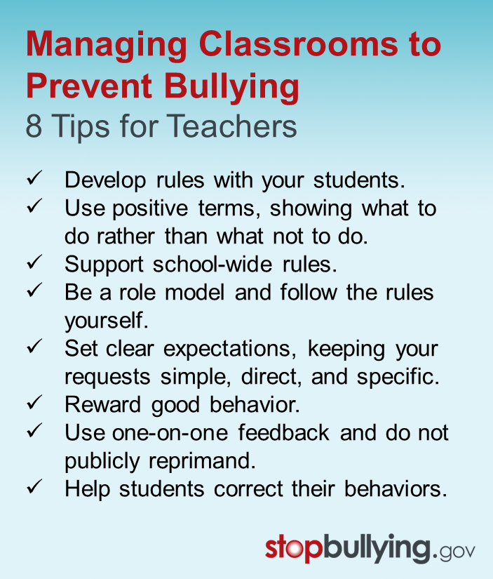 Teachers should empower students by educating them about bullying in schools or outside the school premises. Either calmly tell the bully to stop bullying or simply walk away. Talk to an adult you trust.